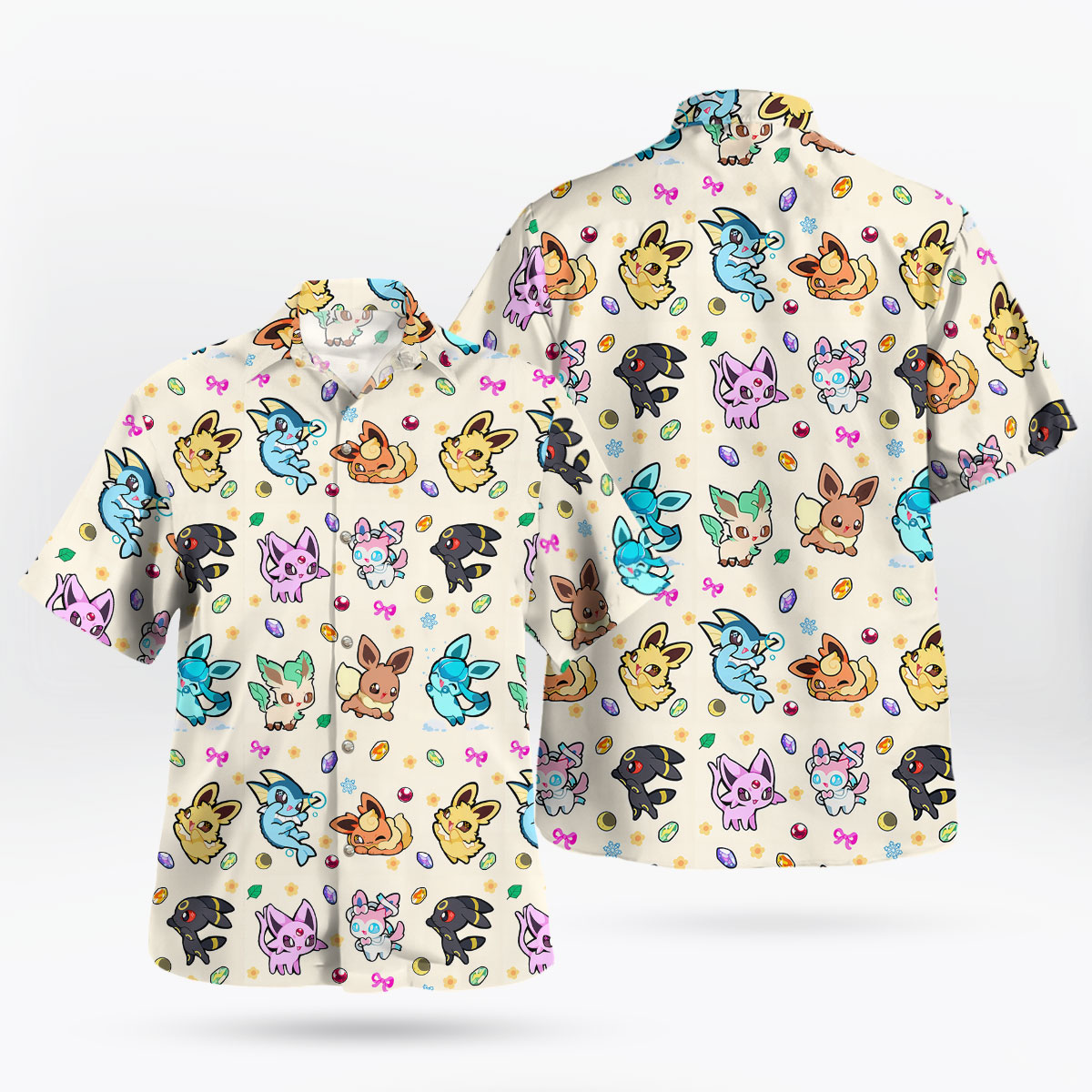 Anime Pokemon Cute Eeveelution Pattern Hawaiian Shirt