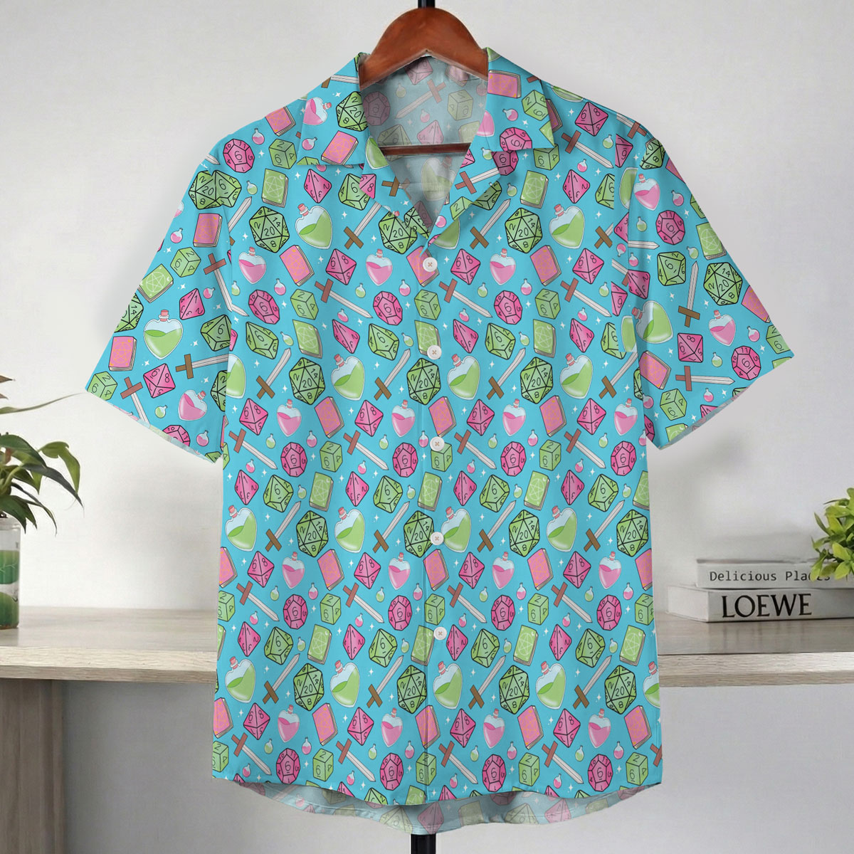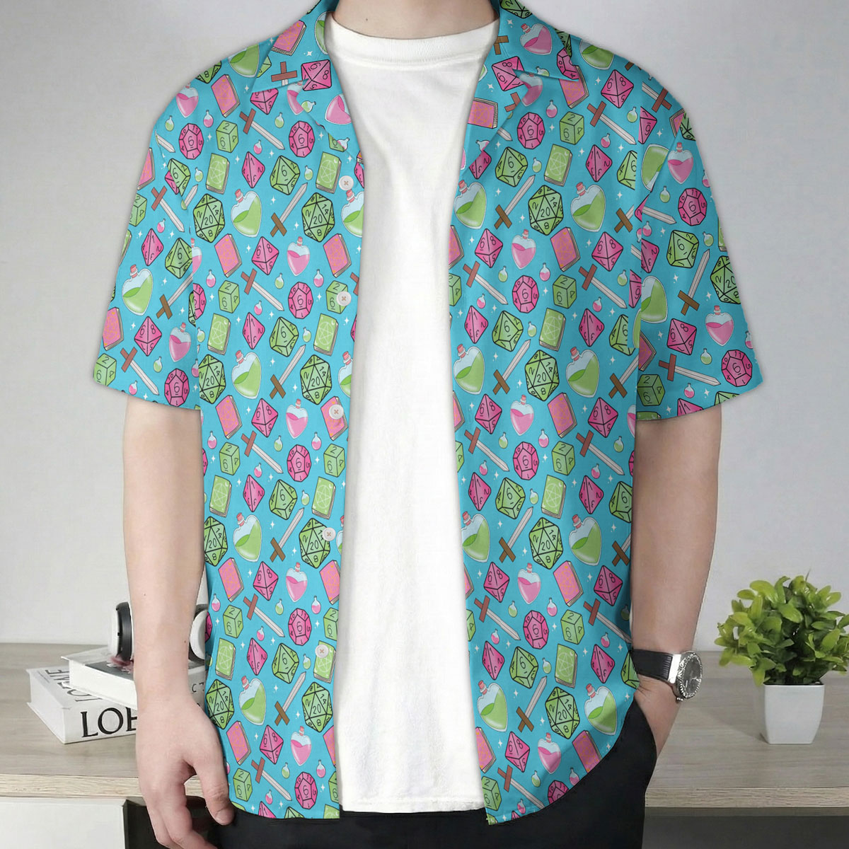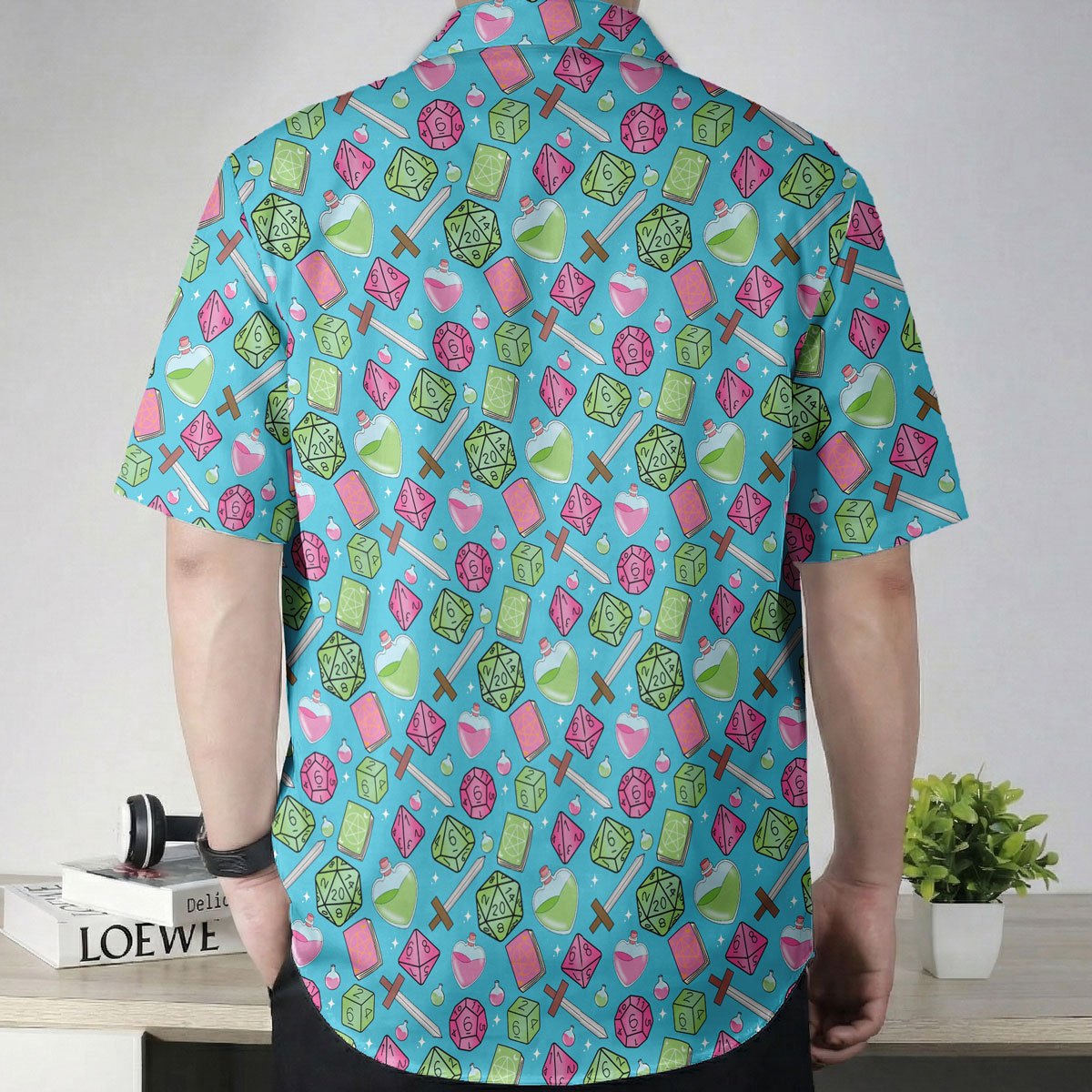 Aqua Blue Vibrant DND Dice Pattern Hawaiian Shirt