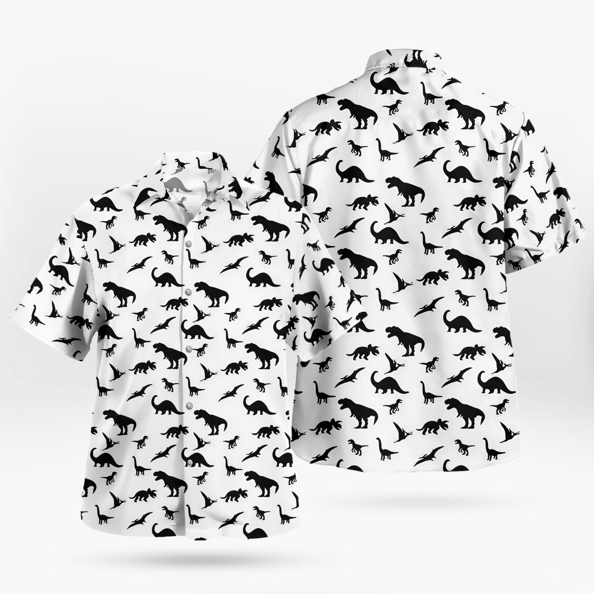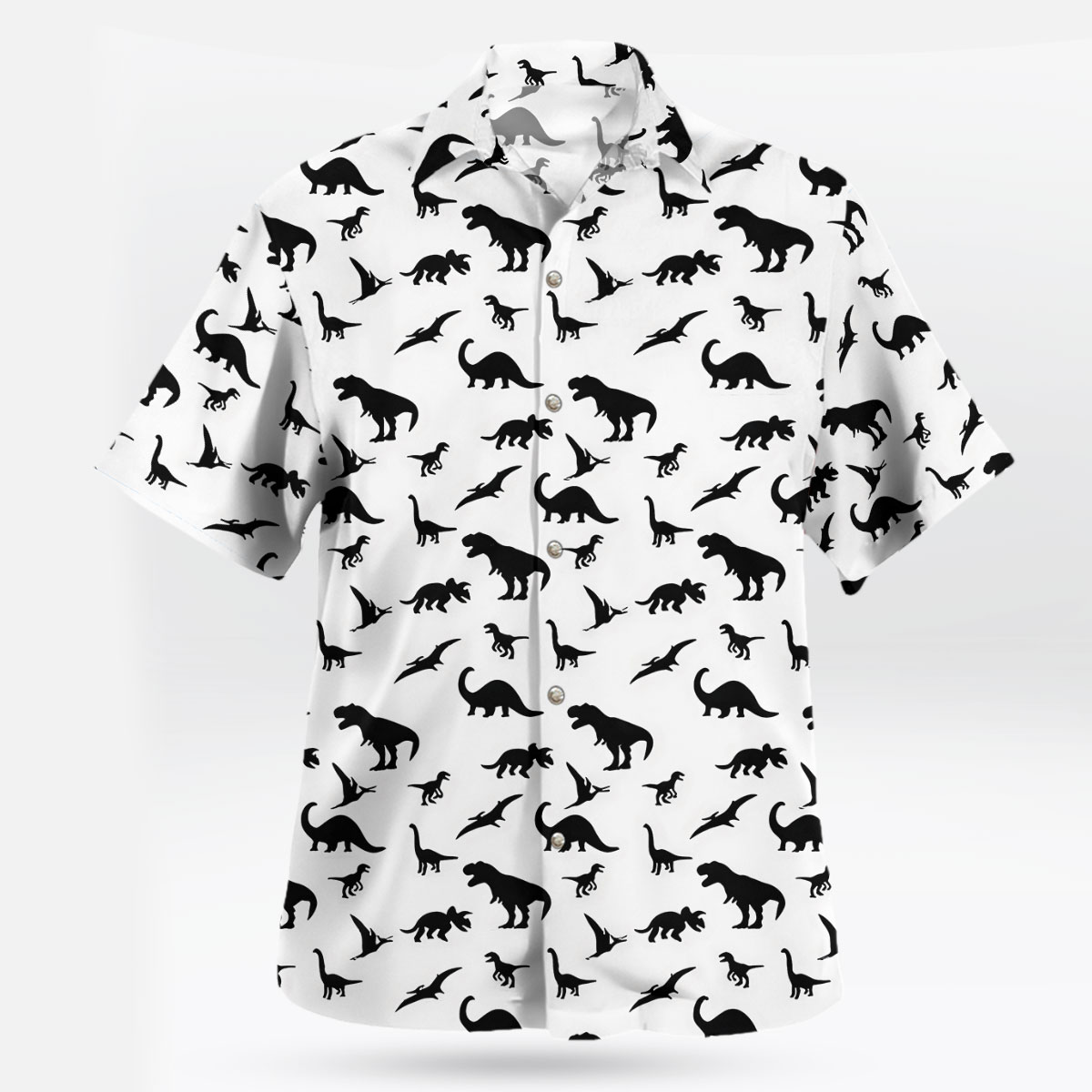 Black & White Dinosaur Silhouette Pattern Hawaiian Shirt