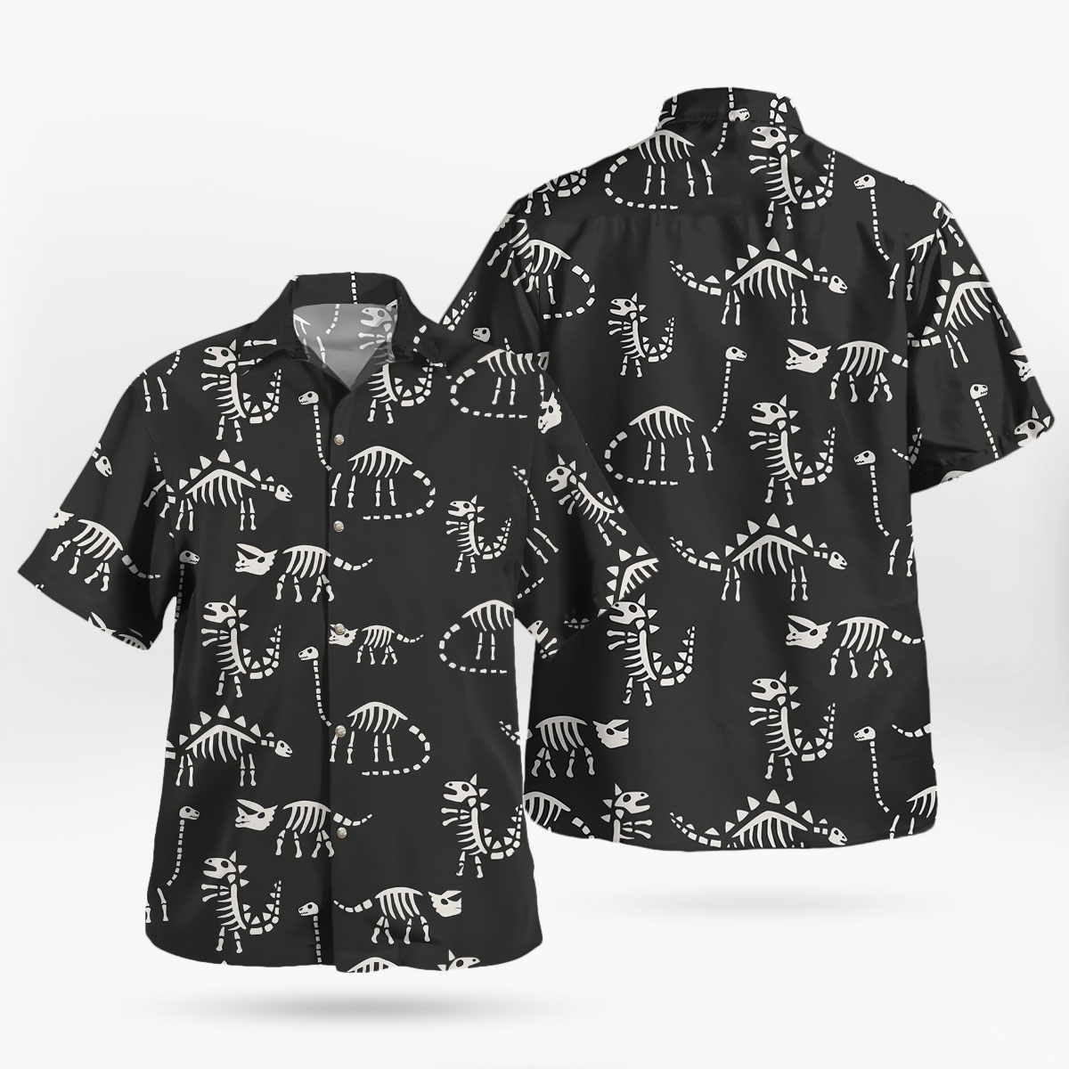Black-white dino skeleton design by Tropi Hawaiian Shirts