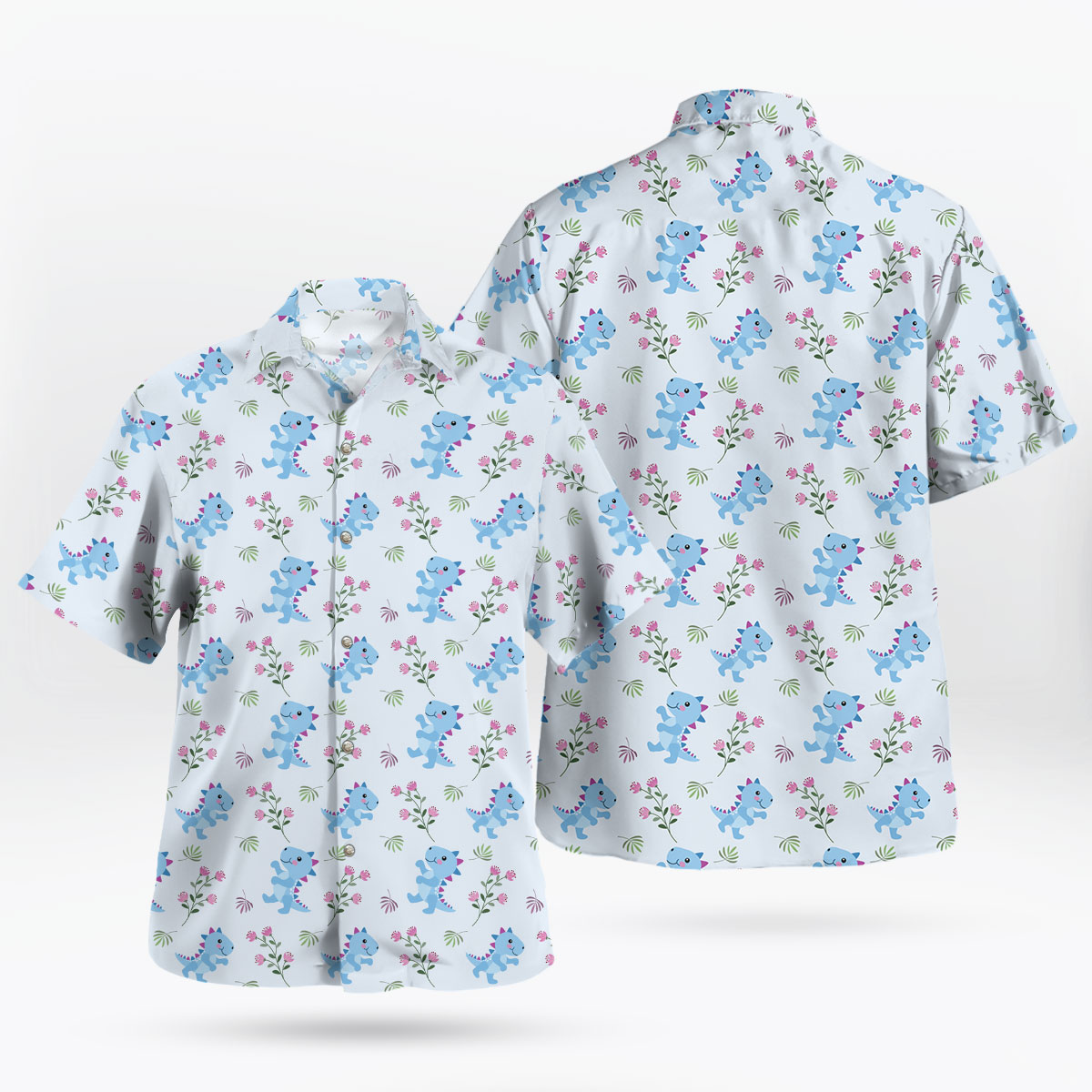 Blue Baby Dino & Pink Floral Pattern Hawaiian Shirt