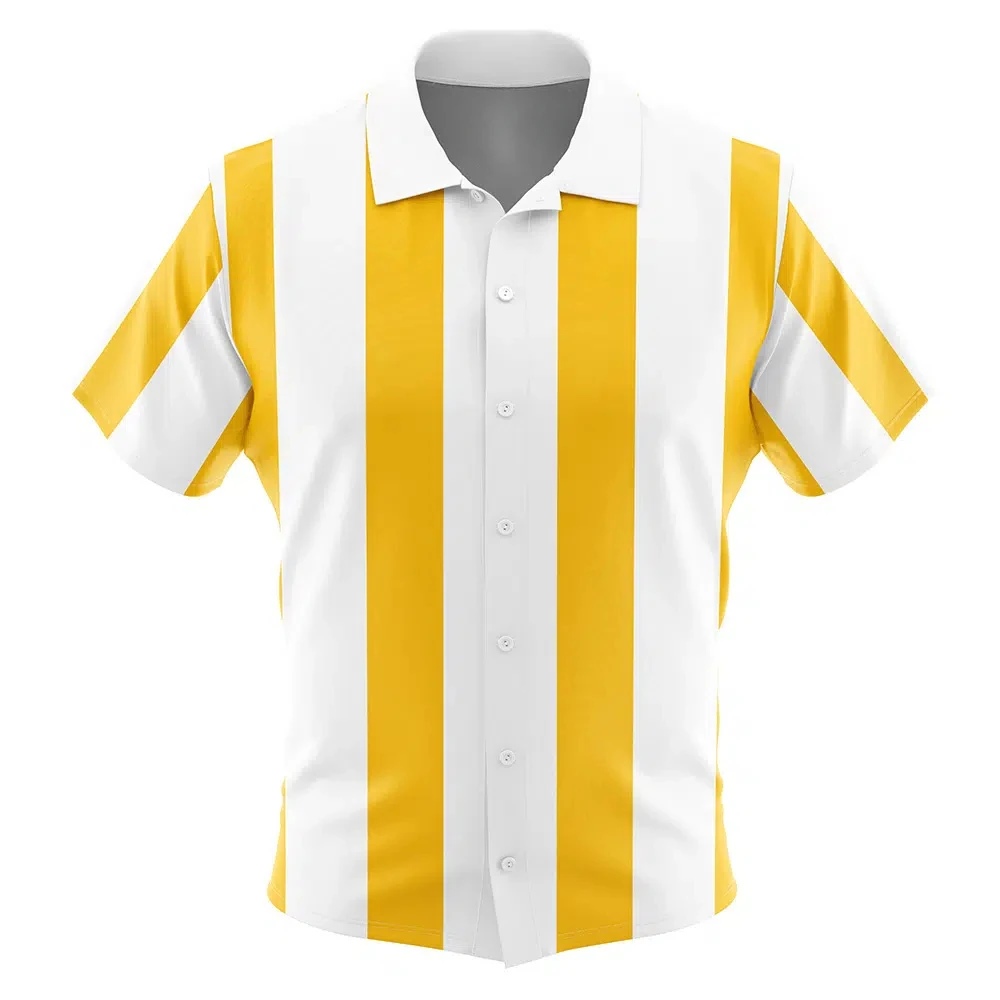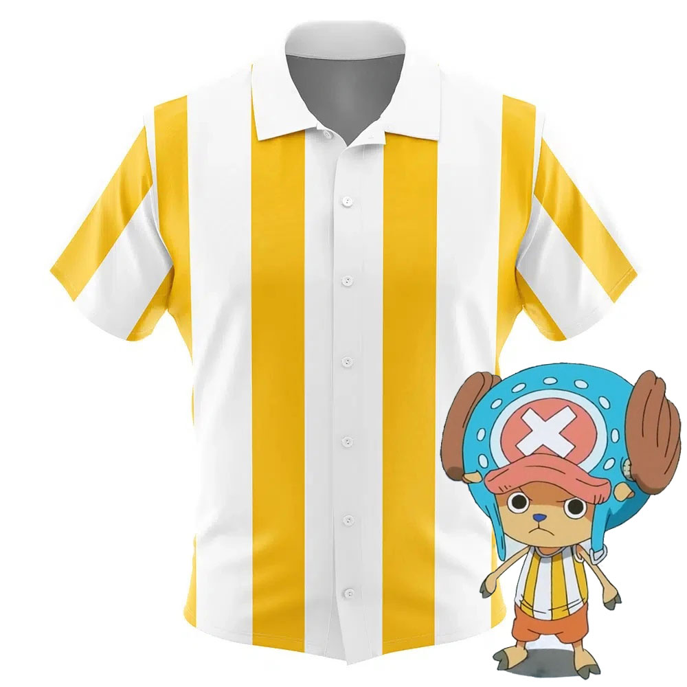 Transform your casual wear with the charm of Chopper himself! Our Chopper Cosplay Striped Shirt is directly inspired by the endearing doctor of the Straw Hat crew, capturing his signature yellow-and-white striped look in a clean, comfortable design.