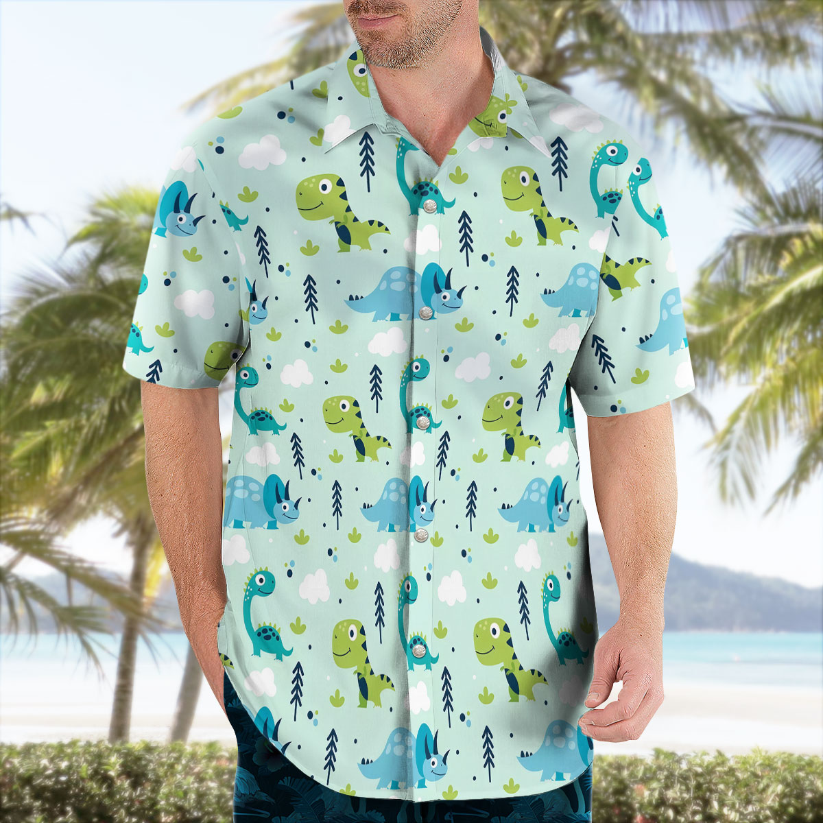 This Cute Cartoon Dinosaur Hawaiian Shirt from Tropi Hawaiian Shirts brings a fresh, mint-green summer look with playful dino artwork. Soft, comfy, and easy to wear—perfect for trips, weekends, or anyone who loves fun, cheerful designs.