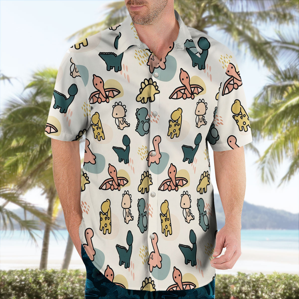 This Cute Pastel Dinosaur Hawaiian Shirt from Tropi Hawaiian Shirts brings a fun, lighthearted vibe to your summer wardrobe. With soft colors and adorable cartoon dinos, it’s comfy, breathable, and perfect for vacations, casual days, or anyone who loves playful designs.