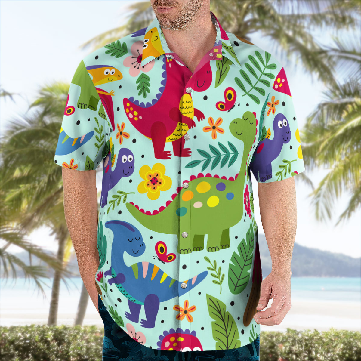- Item name: Dinosaur Hawaiian Shirt – Prehistoric Tropical Print Beach Aloha Shirt
