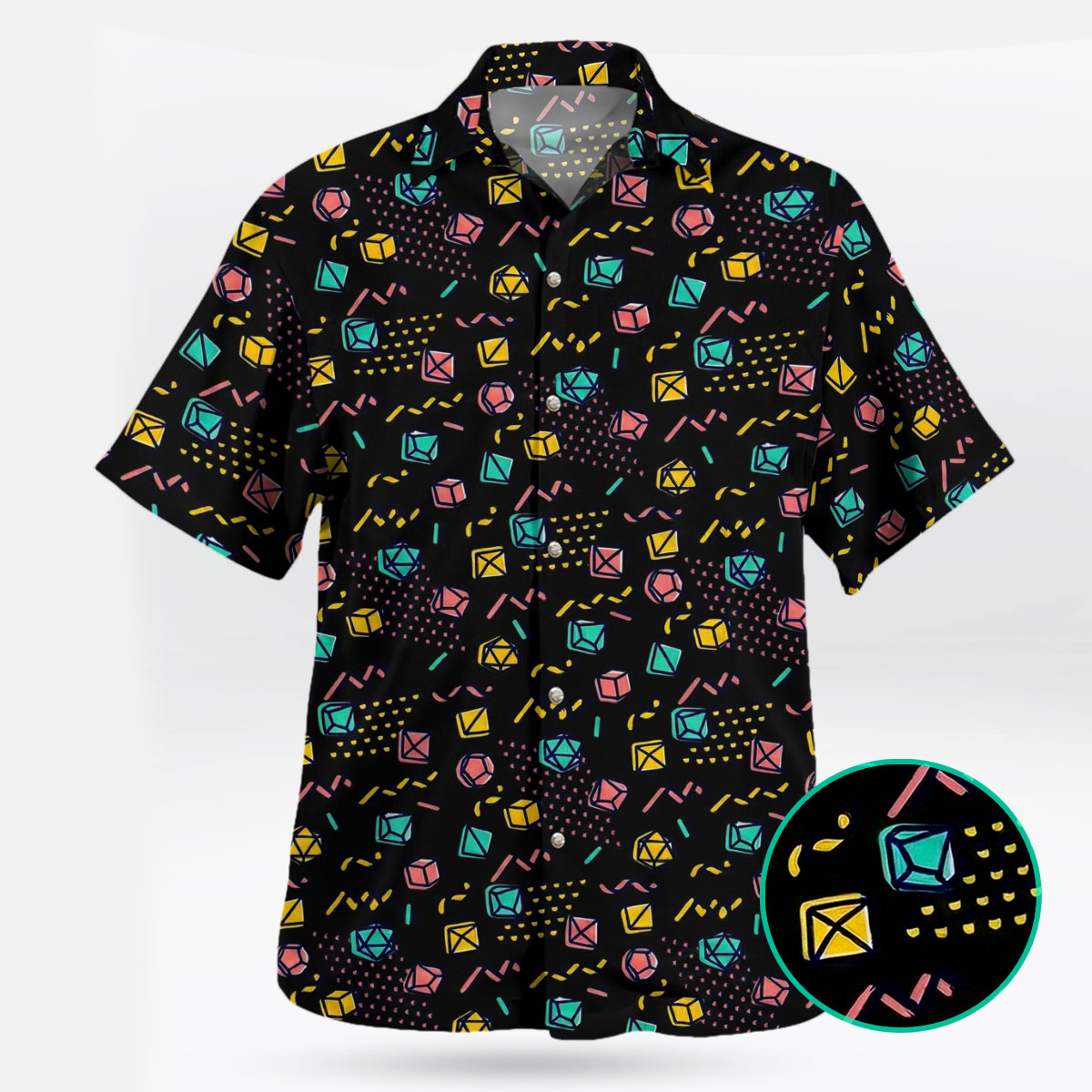 DND Neon Dice Pattern Black Retro Hawaiian Shirt