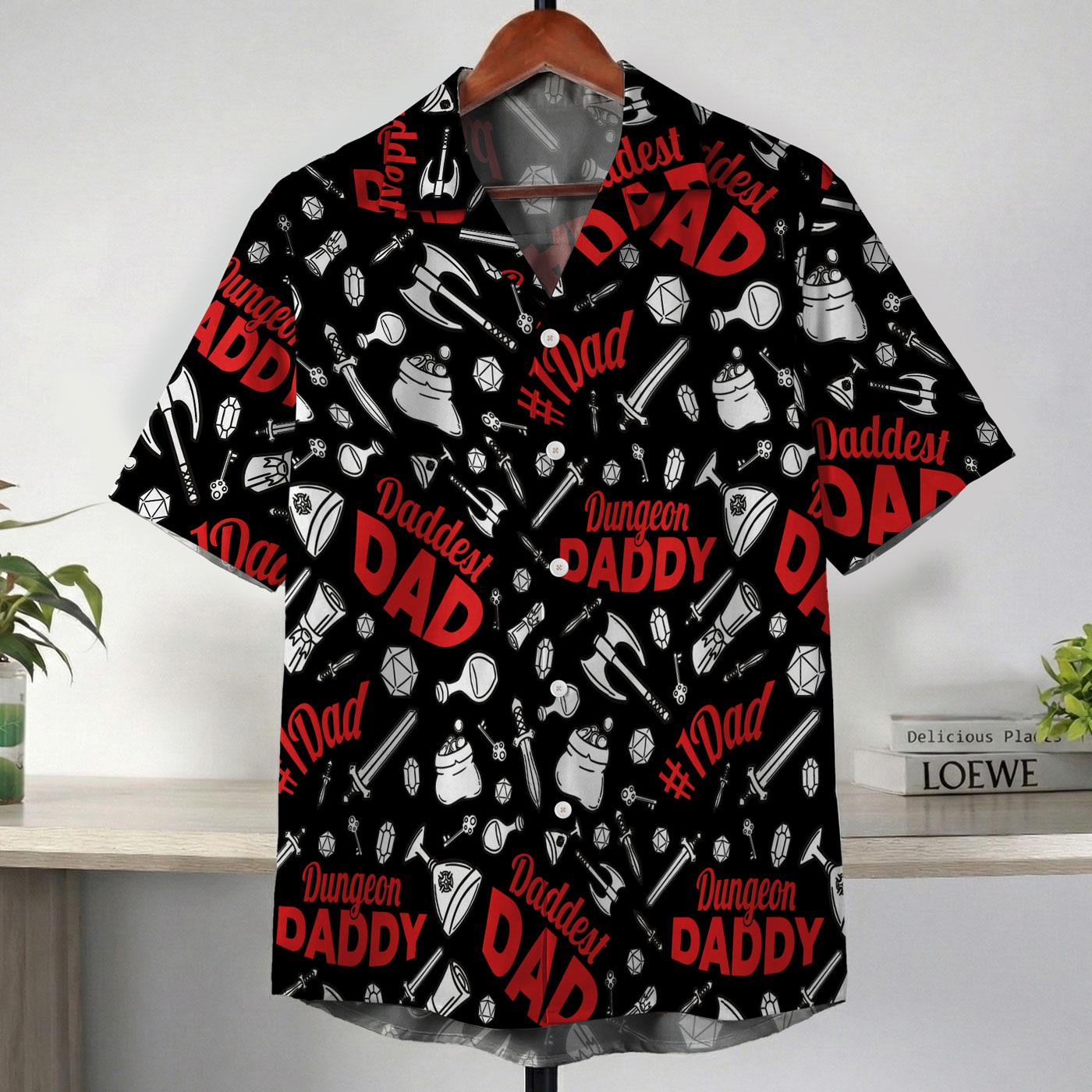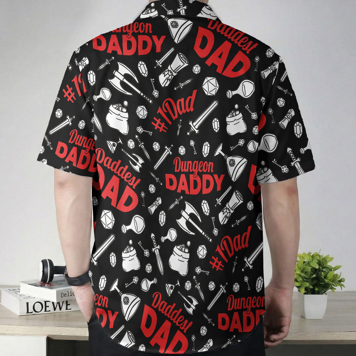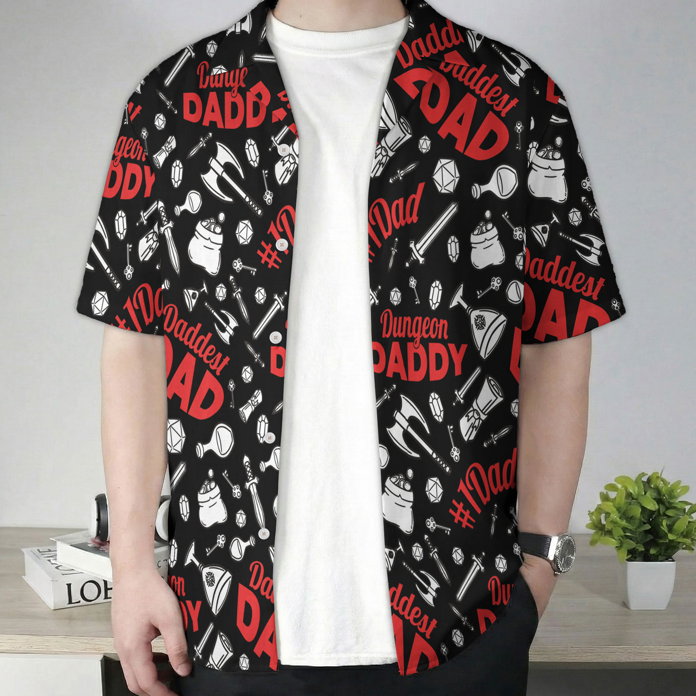 Dungeon Daddy DND Dad Black Hawaiian Shirt