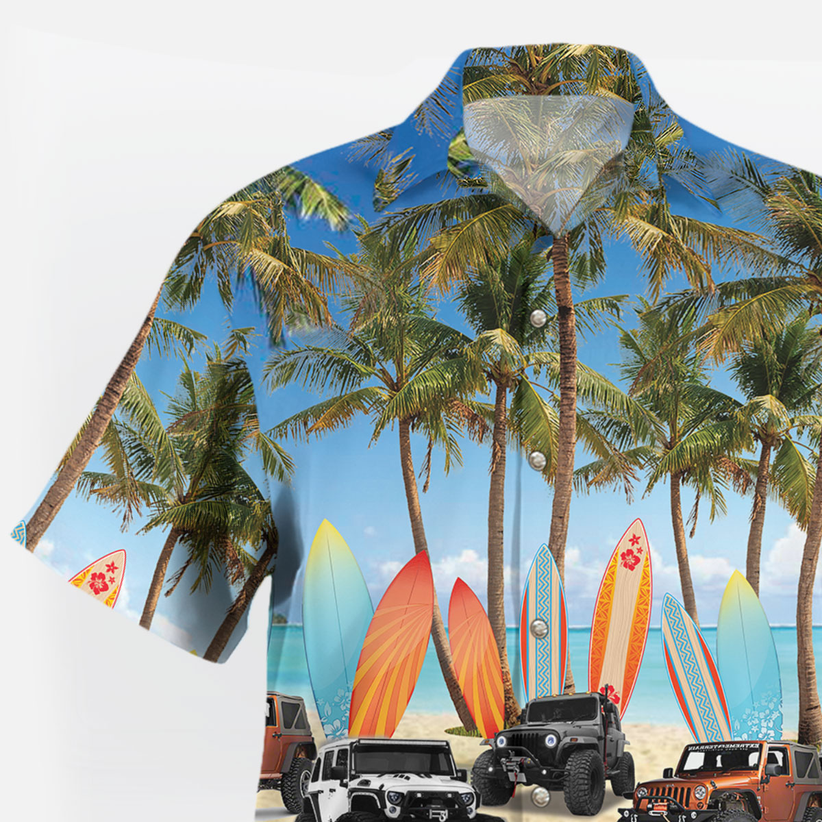 Jeep Beach Surf Tropical Hawaiian Shirt