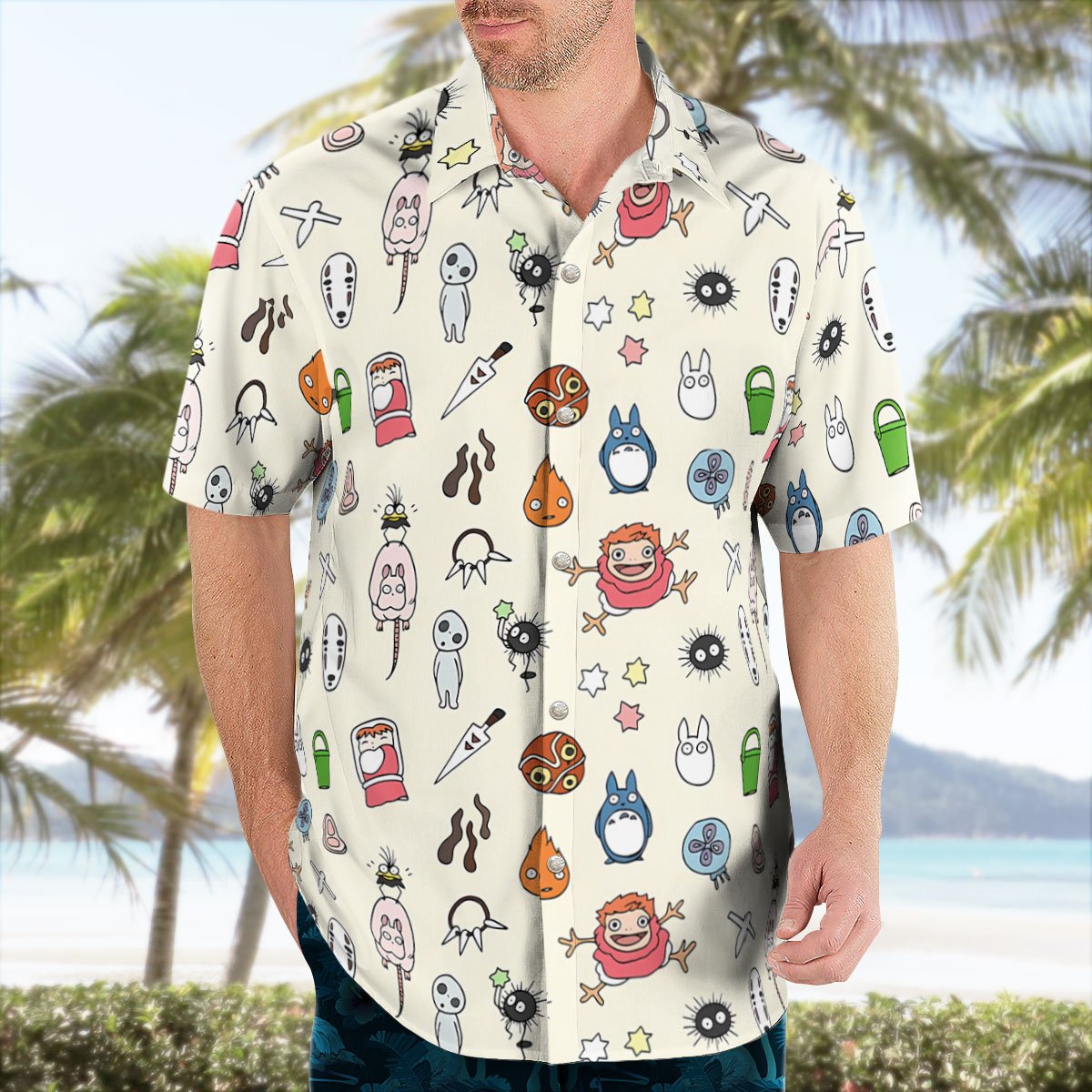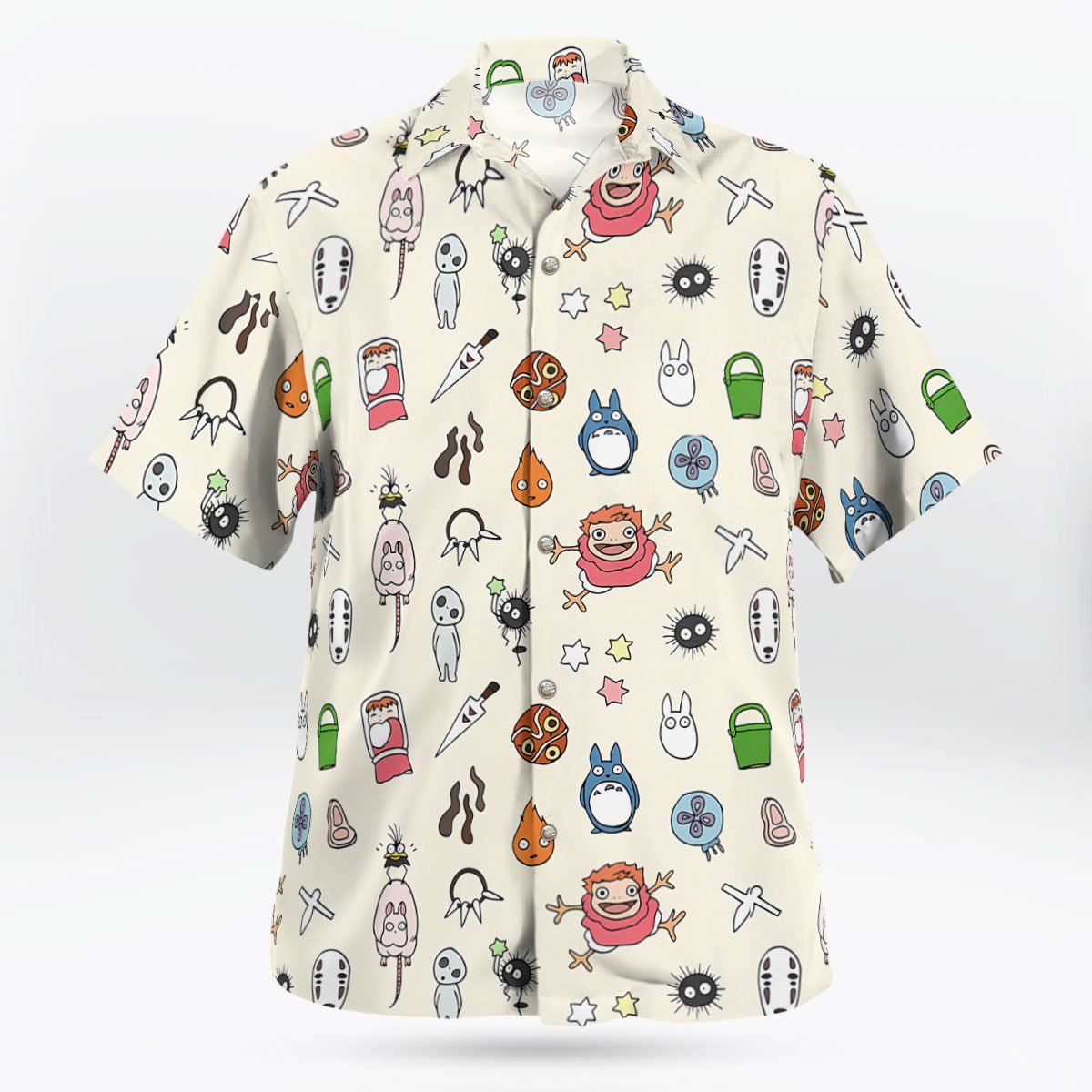 Anime Studio Ghibli Mini Characters Button Up Hawaiian Shirt