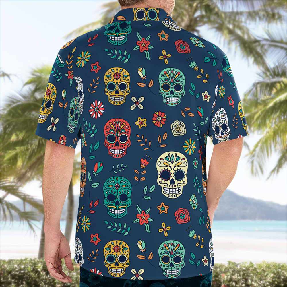 - Item name: Navy Suger Skull Pattern Button Up Hawaiian Shirt