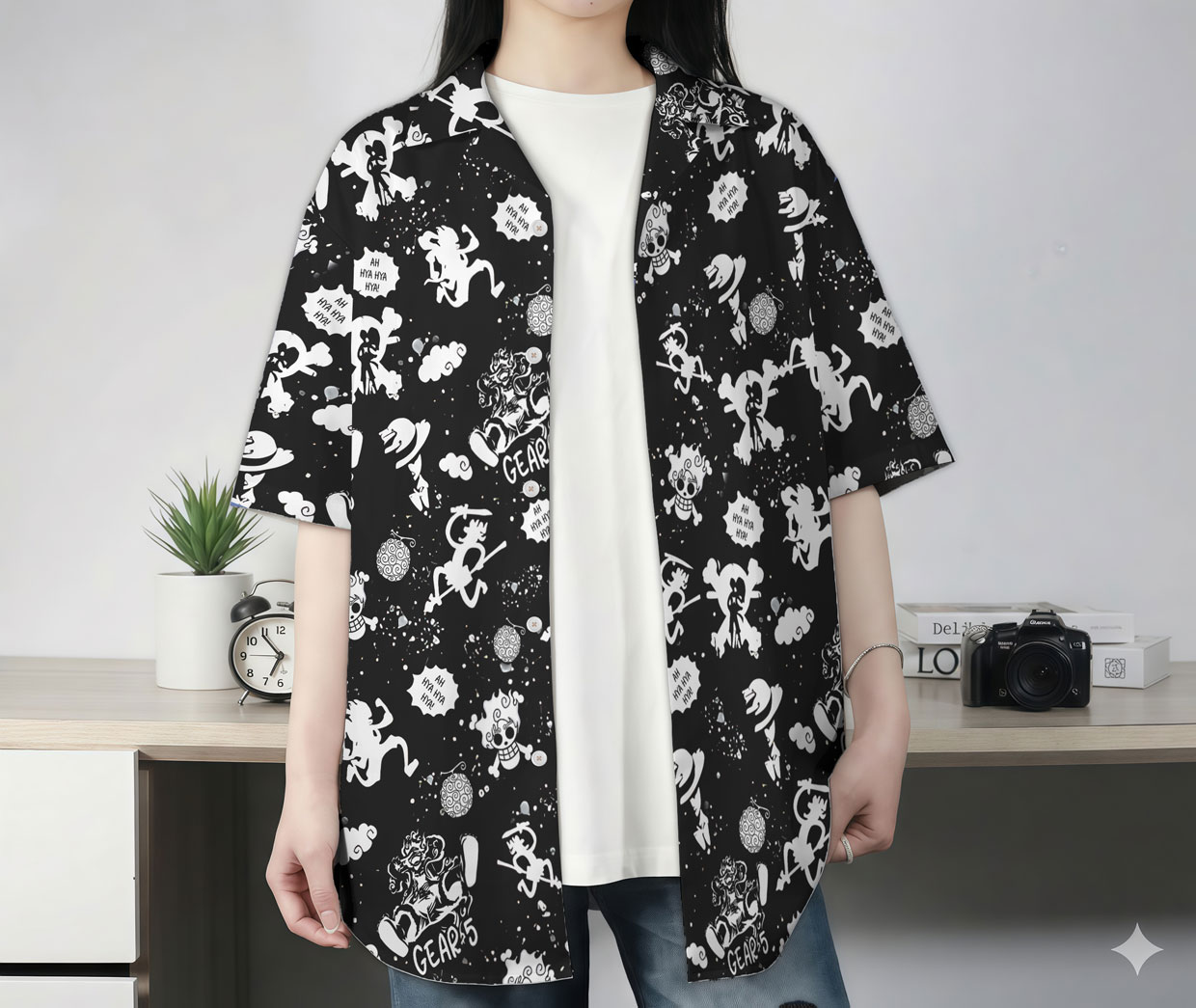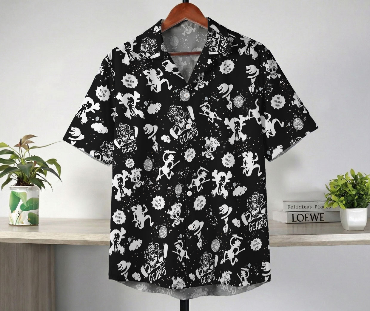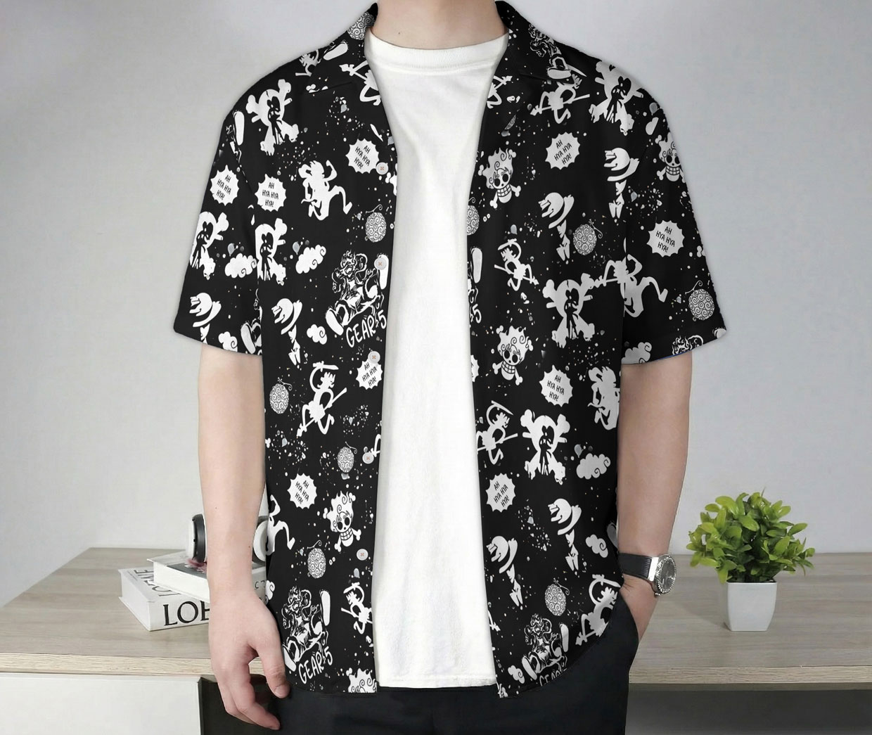 One Piece Luffy Gear 5 Black White Pattern Hawaiian Shirt