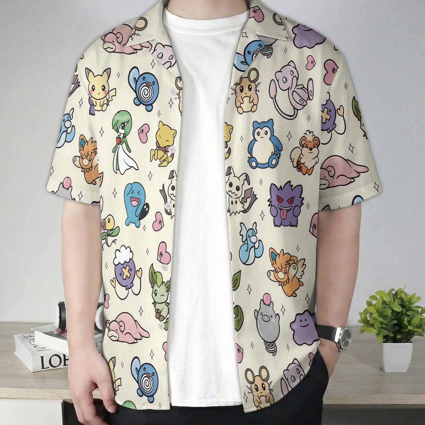 Pastel Yellow Kawaii Pokemon Character Hawaiian Shirt