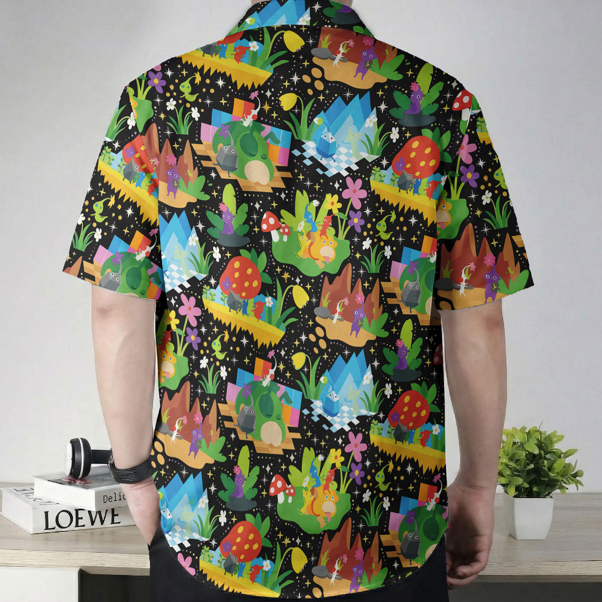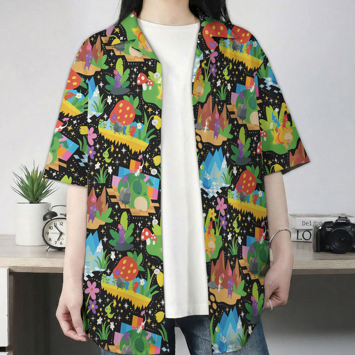 Pokémon Hawaiian shirt featuring colorful fantasy world pattern. Lightweight, breathable, and perfect for summer, beach days, or playful anime style.