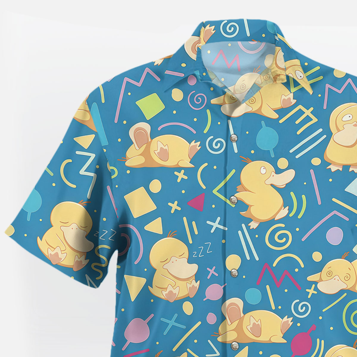 - Design: All-over Psyduck pattern combined with retro geometric shapes and playful doodles