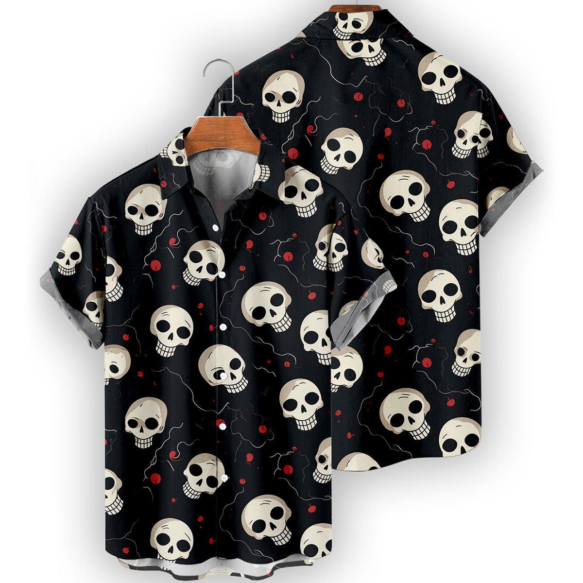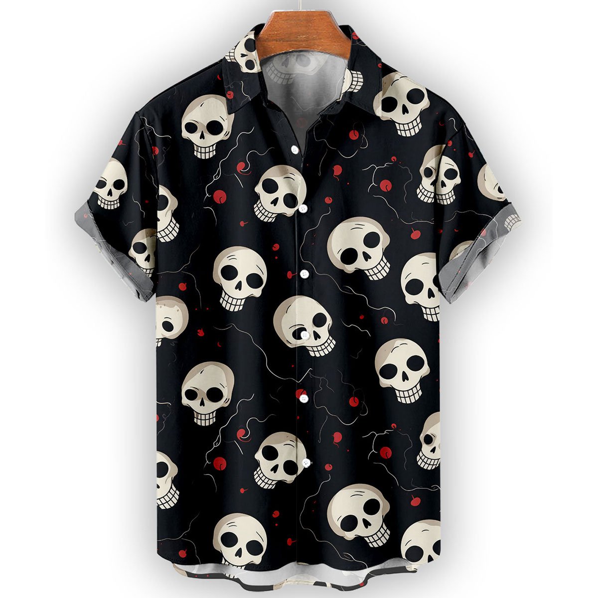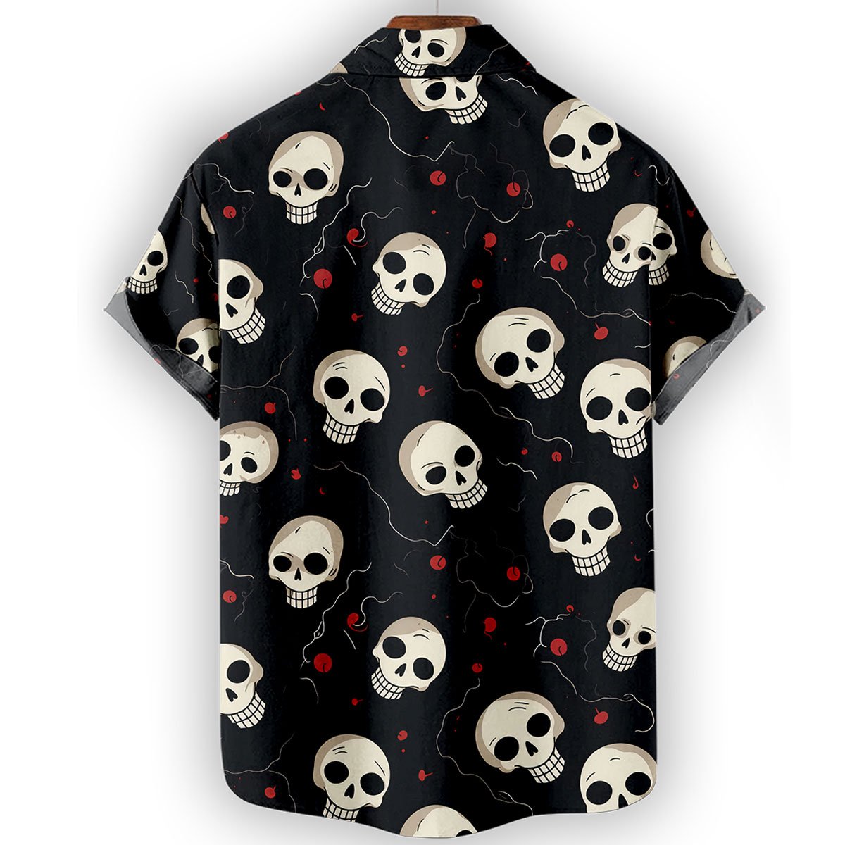 elebrate spooky season in style with the Skull & Cherries Halloween Hawaiian Shirt. This eye-catching design combines playful skull patterns with bright red cherries, giving a unique mix of scary and fun. Made from soft, lightweight, and breathable fabric, it’s ideal for Halloween parties, beach outings, festivals, or casual everyday wear. A bold and stylish piece that adds a touch of Halloween spirit to your wardrobe.