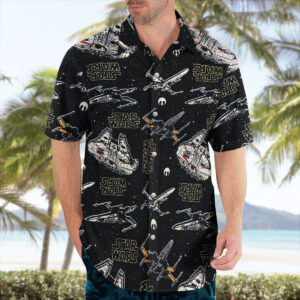 Step into hyperspace style with this Star Wars Hawaiian Shirt, featuring detailed schematics of the galaxy’s most iconic ships. From the Millennium Falcon to X-Wings and TIE Fighters, this design blends tropical casualwear with legendary sci-fi history.