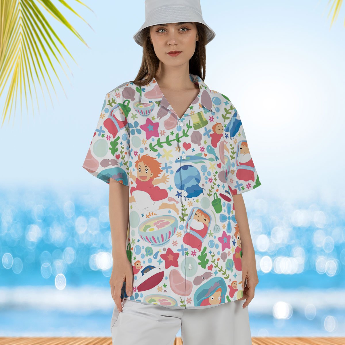 Anime Studio Ghibli Ponyo Pattern Hawaiian Shirt for Womens
